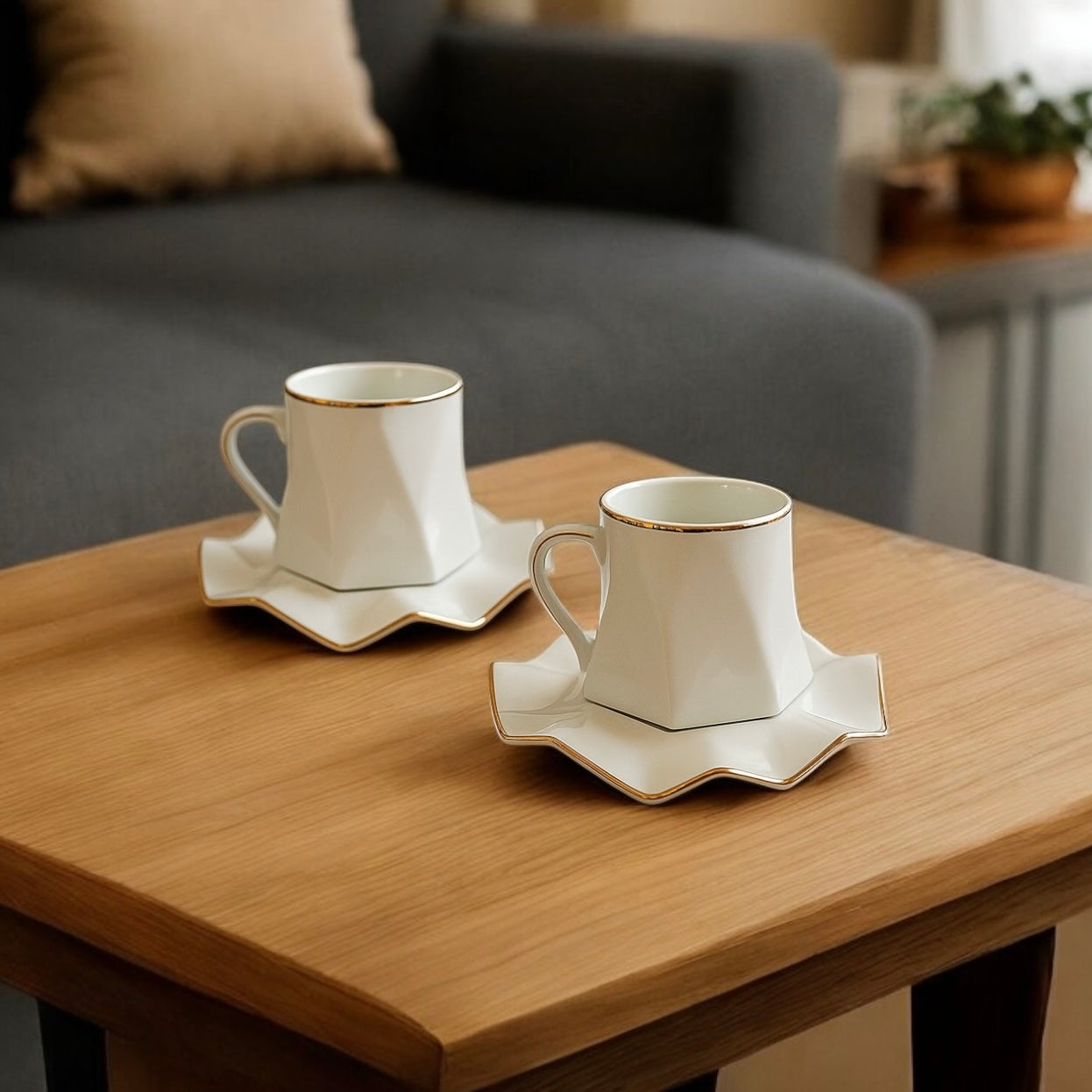 Alexandra Kaffeetassen im 6er-Pack vereinen modernes Design mit Eleganz. Die scharfen Kanten und das einzigartige Design machen jede Tasse zu einem Kunstwerk, komplett mit dezenten roségoldenen Details. Perfekt für alle, die bei jeder Kaffeesession Stil und Funktion suchen. Werten Sie Ihre Kaffeezeit mit dieser raffinierten Kollektion auf!
