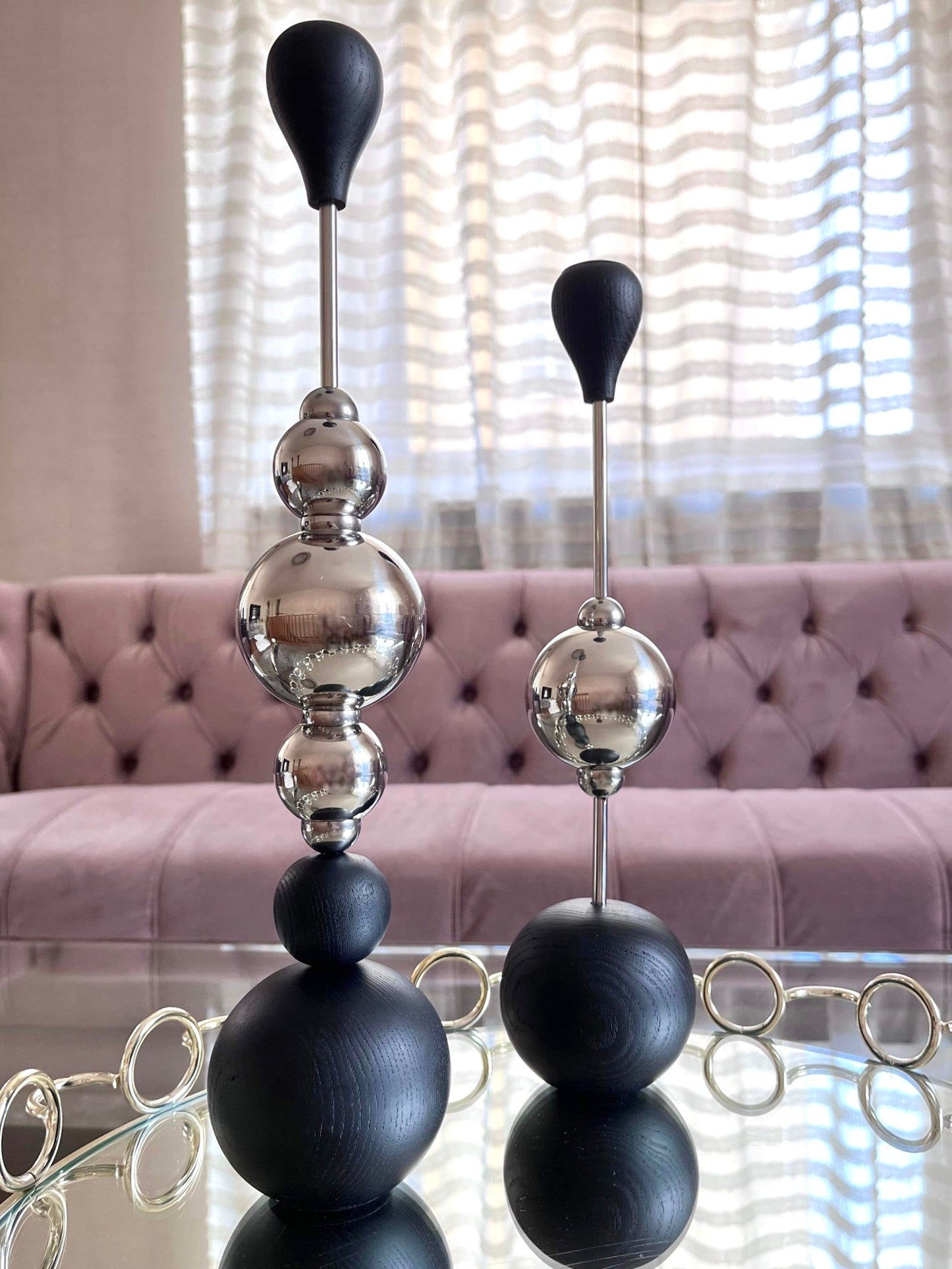 Ein alltägliches Schmuckstück in Form eines Kerzenhalters mit einem bezaubernden Mix aus mattem Schwarz und glänzendem Silber. Dieser Kerzenhalter mit seiner verbesserten Qualität verleiht Ihrem Zuhause ein luxuriöses, entspannendes Hotelgefühl. Erhältlich in zwei verschiedenen Größen für einen exquisiteren Look!