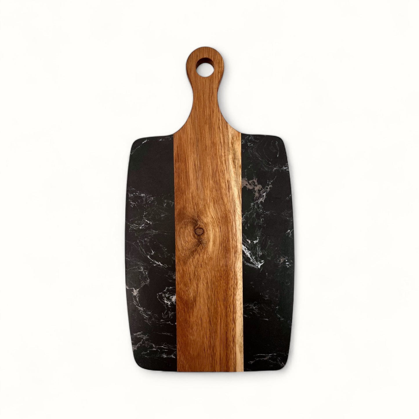 Unser elegantes Käse- und Schneidebrett aus Akazienholz und schwarzem Marmor ist die perfekte Kombination aus Tradition und Moderne. Dieses vielseitige Schneidebrett ist sowohl ein Küchenutensil als auch ein Einrichtungsdetail. Perfekt zum Servieren von Käse, Wurstwaren oder als stilvolles Innendetail. Auch in Weiß erhältlich.