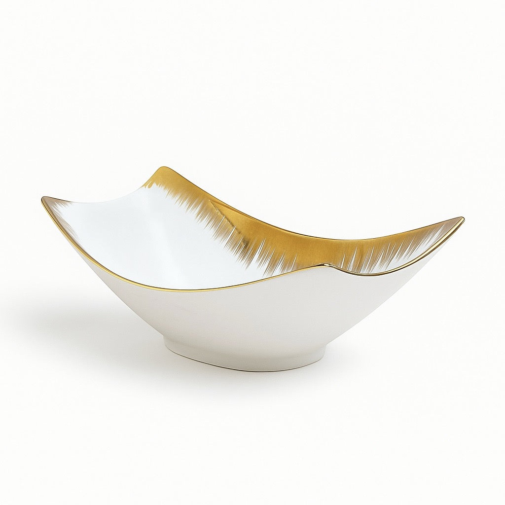 Ge din dukning en lyxig känsla med denna stilrena serveringsskål/salladsskål. Skålarna har en vacker vit bas och pryds med en dekorativ, glittrande guldkant som ger en exklusiv touch till varje tillfälle. Kika gärna på andra produkter från Emmy Kollektion som passar utmärkt med denna skål, till exempel Emmy skål/tallrik/serveringstallrik/kaffekoppar.