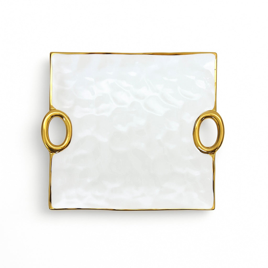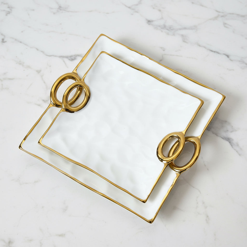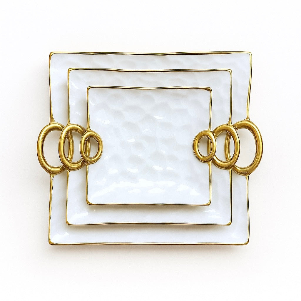 Klara tallrikar i vågigt vitt porslin med elegant guldkant ger en sofistikerad känsla till varje dukning. Finns i tre storlekar och passar perfekt för både vardagsbruk och festliga tillfällen. Kombinera gärna med Klara serveringsfat för en enhetlig och lyxig servis.