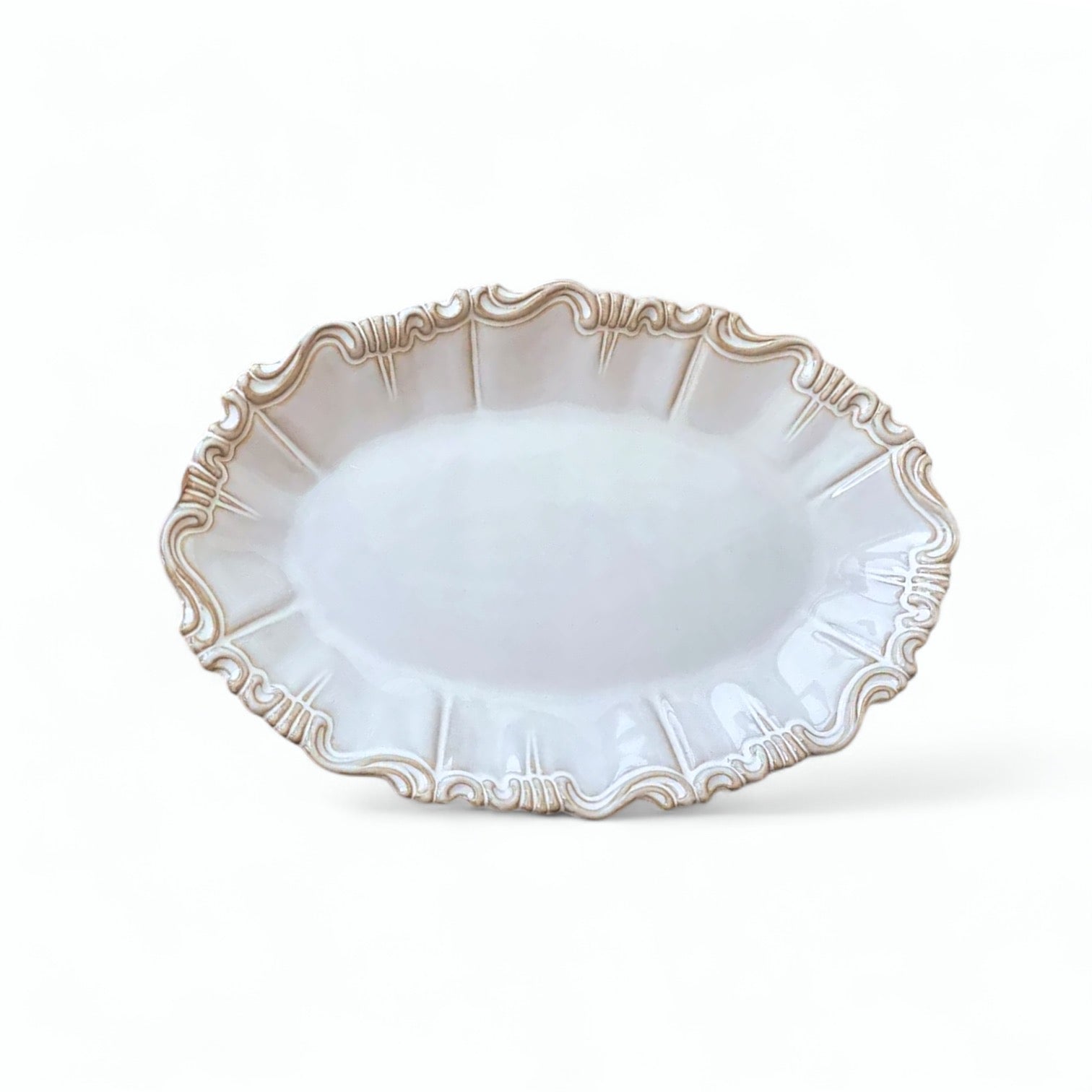 En rund tallrik i lätt lyx stil, tillverkad av porslin. Denna tallrik ger dig en fancy restaurang känsla och förfinar ditt matbord. Den är en aning djup och passar perfekt till olika maträtter. Komplettera din köksinredning med vår Laura kollektion som passar felfritt med denna tallrik!