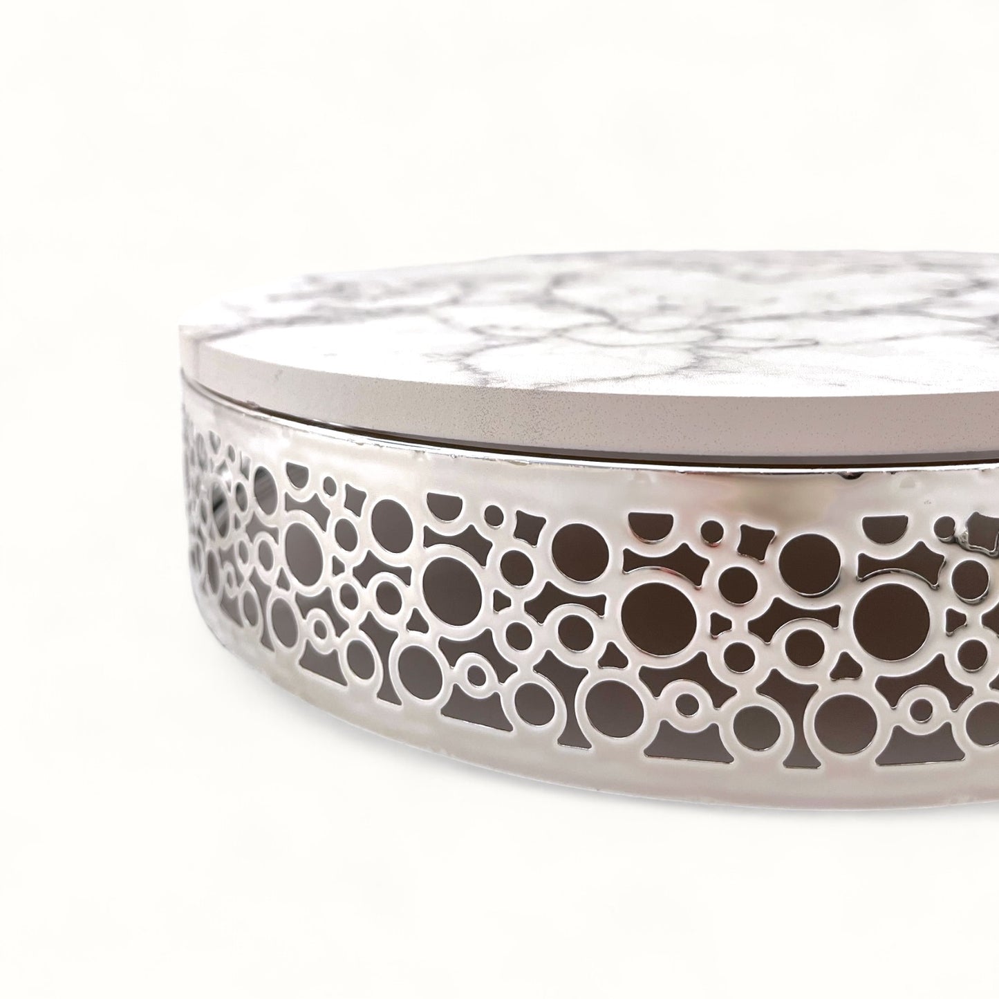 Ett dekorativt tårtställ av trä med metalldetaljer. Passar utmärkt vid ett speciellt firande eller ett kalas. Vårt fantastiska tårtställ är mångsidigt nog att passa både för fina tillställningar och vardagliga dukningar. Oavsett om du vill förgylla en speciell fest eller bara skapa en extra touch av elegans i vardagen, är detta tårtställ den perfekta lösningen. Med sin stilfulla design och användbarhet är det en funktionell och vacker tillägg till ditt kök