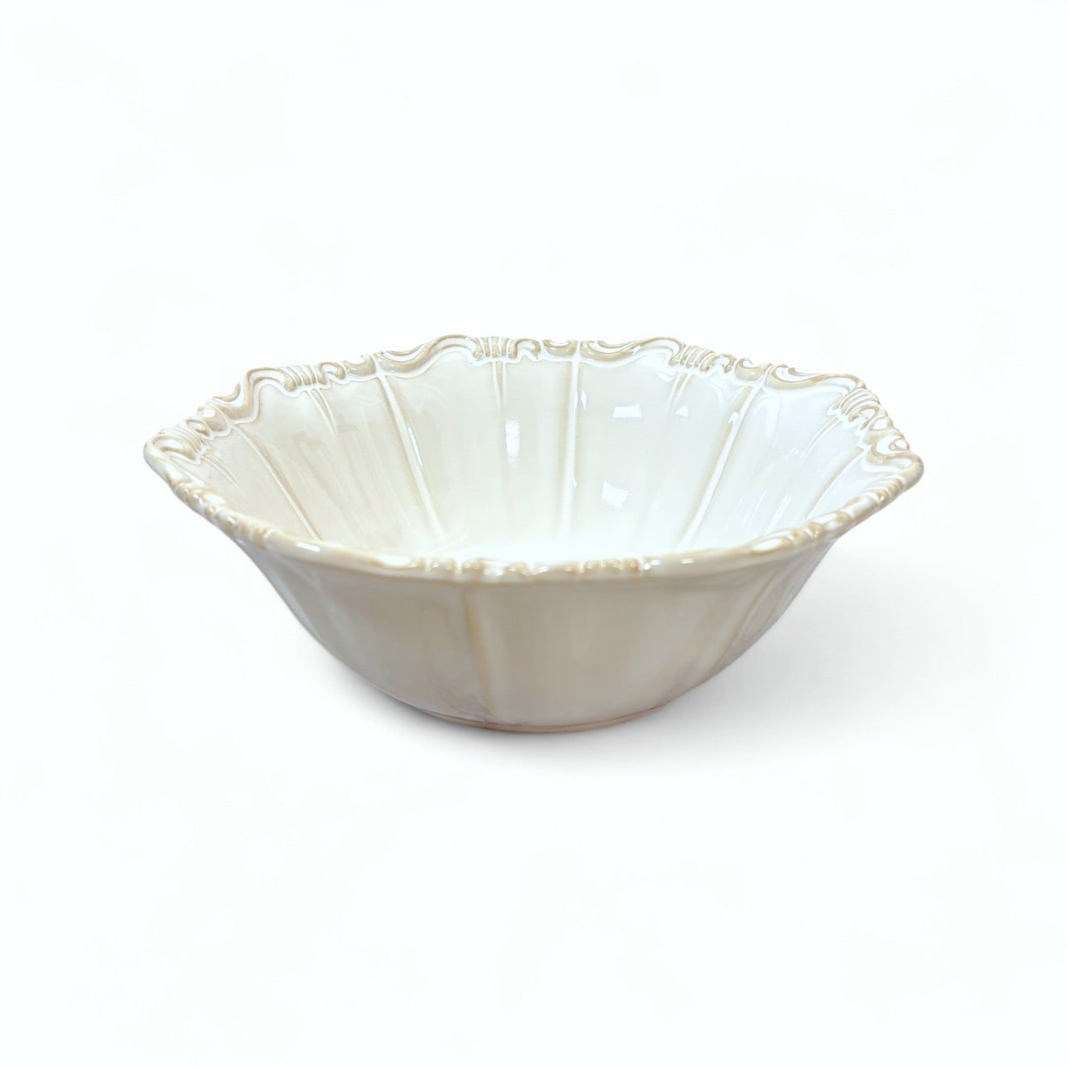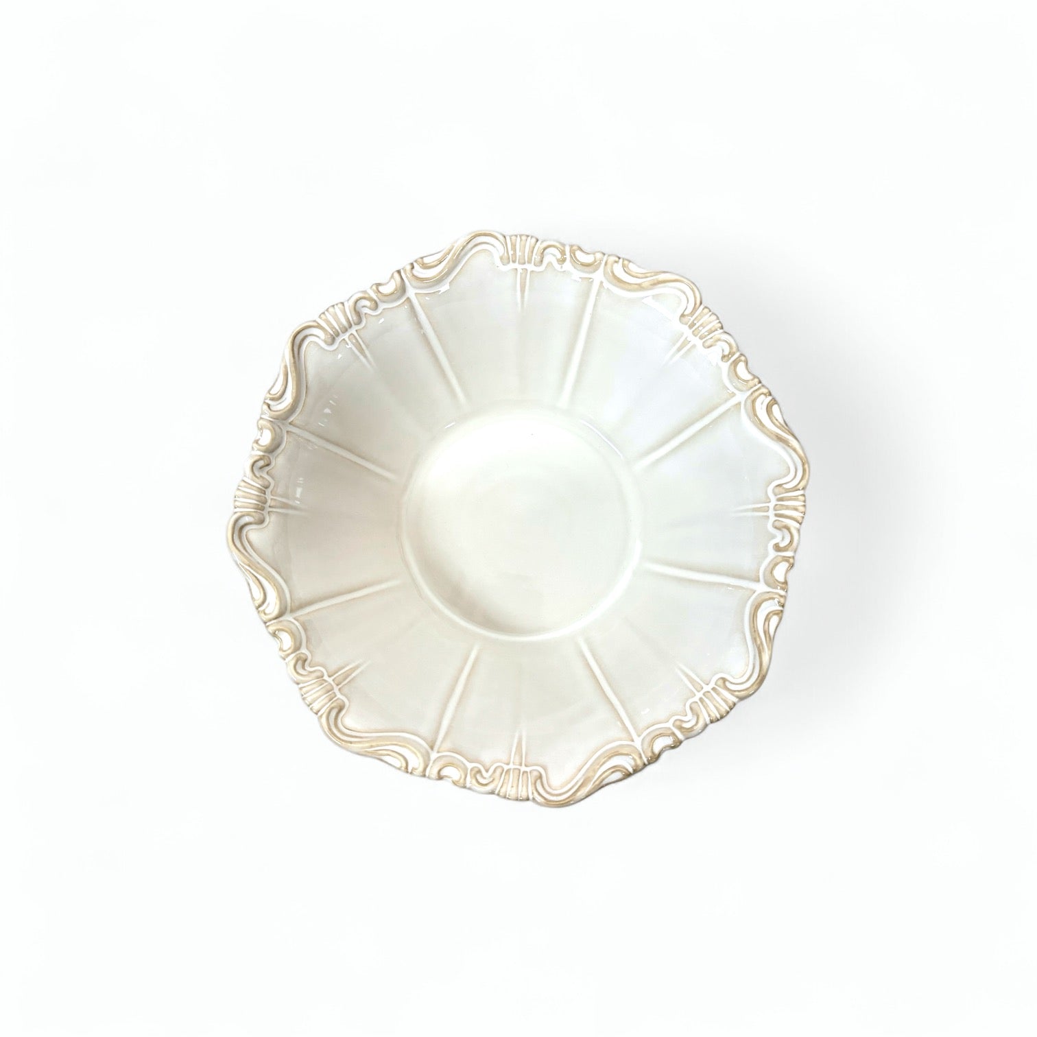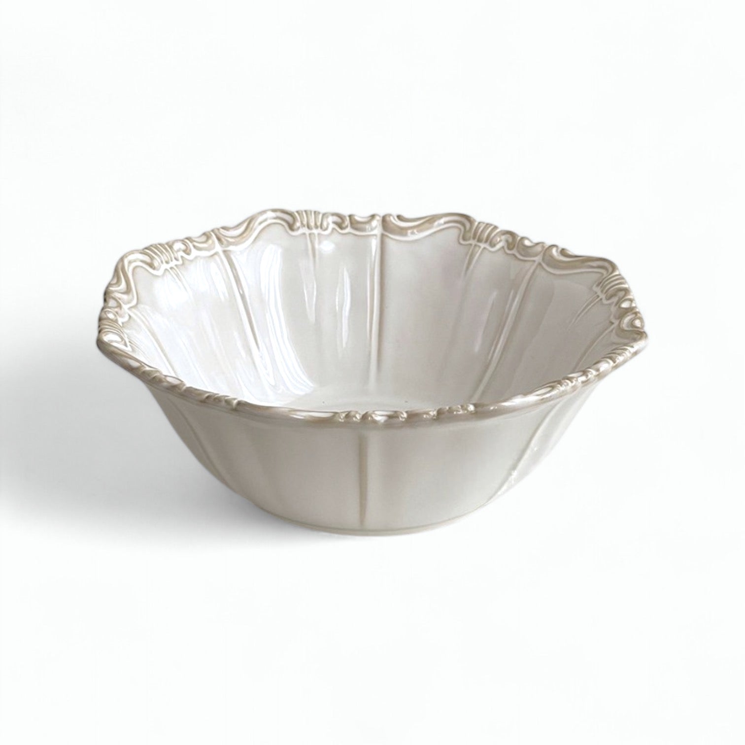 Rund skål i lätt lyxig stil, tillverkad av porslin och finns i två storlekar. Med sin aning djupa form passar den perfekt för soppor, sallader eller andra maträtter. Skapa en elegant restaurangkänsla hemma och komplettera med övriga produkter i Cynthia-kollektionen.