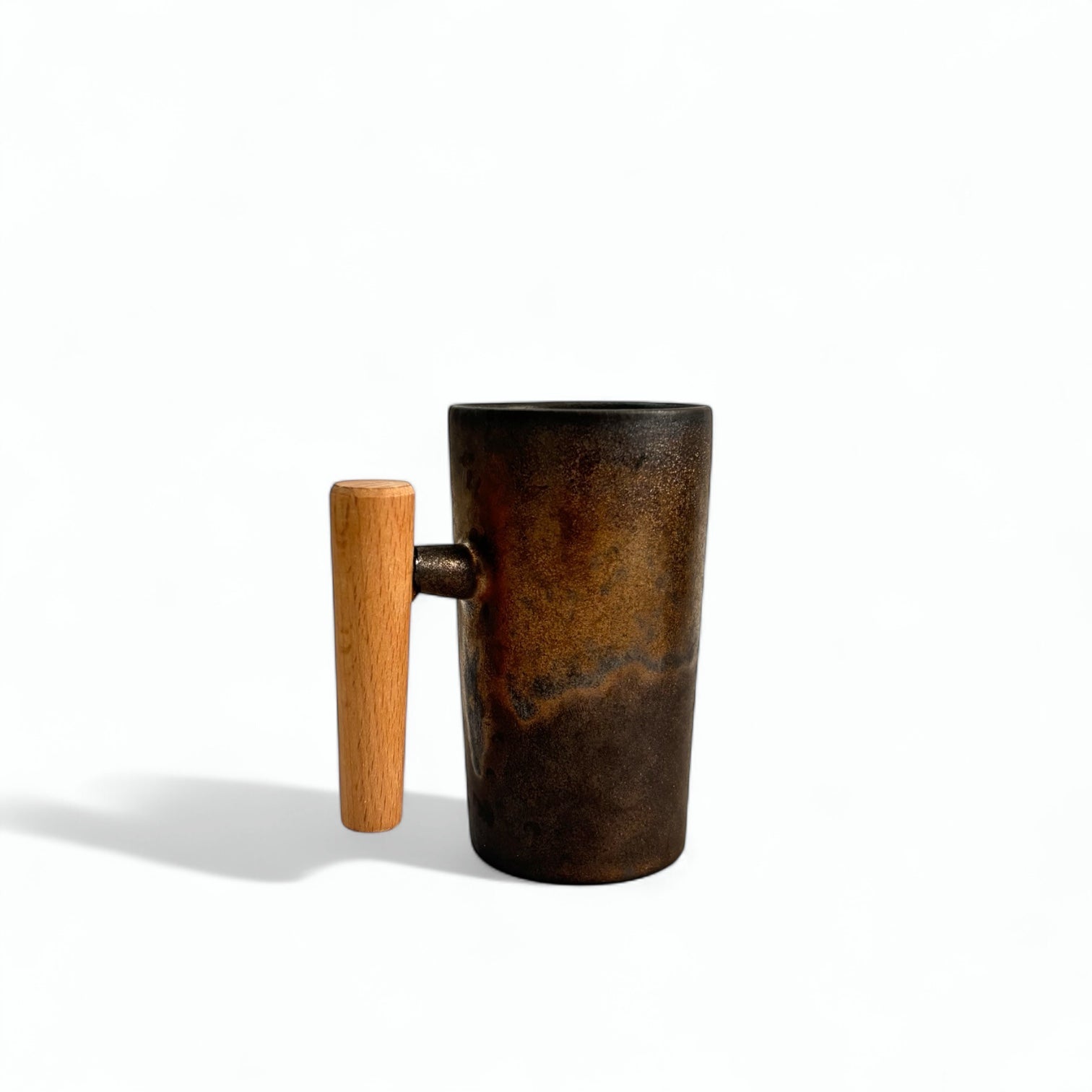 Denna unika kopp är tillverkad av högkvalitativ keramik och har ett vackert handtag av trä, som ger den en autentisk vintagekänsla. Med sitt tidlösa utseende och hantverksmässiga detaljer är denna kopp ett perfekt val för dem som uppskattar klassisk design och genuint materialval.