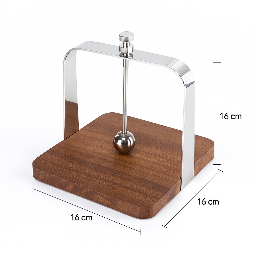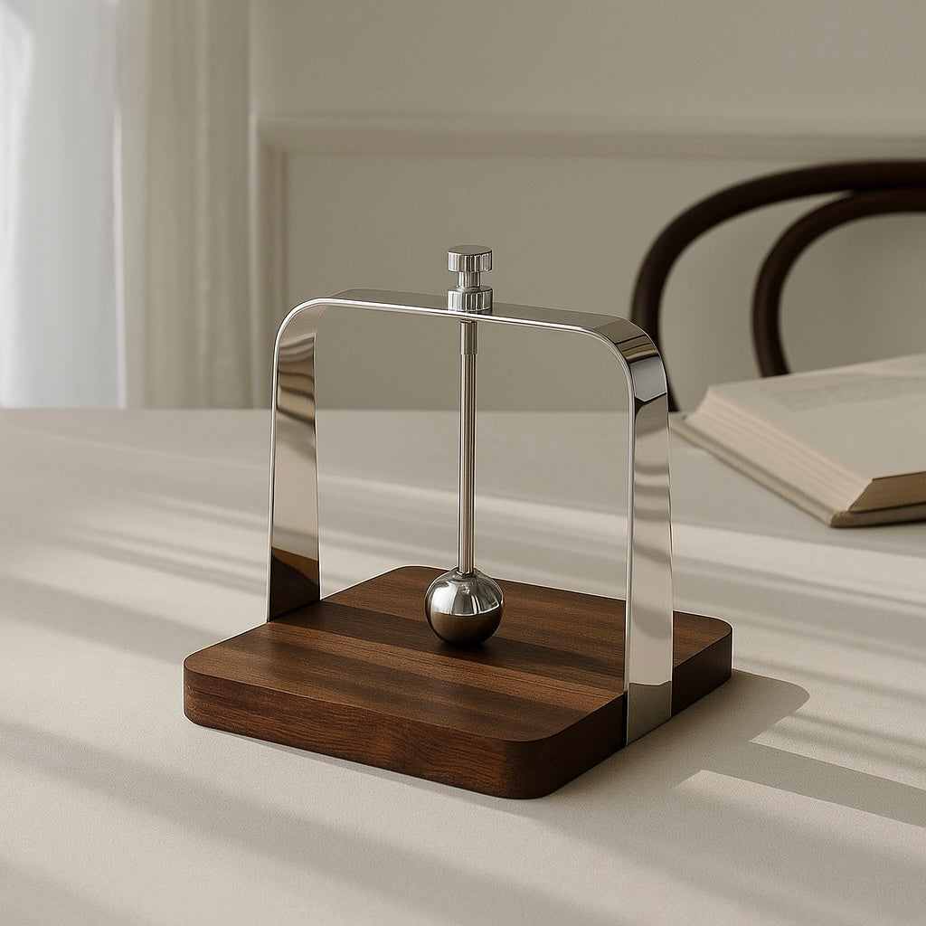 Elegant servetthållare med robust träbas och stilren metallbåge i rostfritt stål. Den smarta viktkulan håller servetterna på plats och gör den både praktisk och dekorativ för matbord, kök och vardagsrum.
