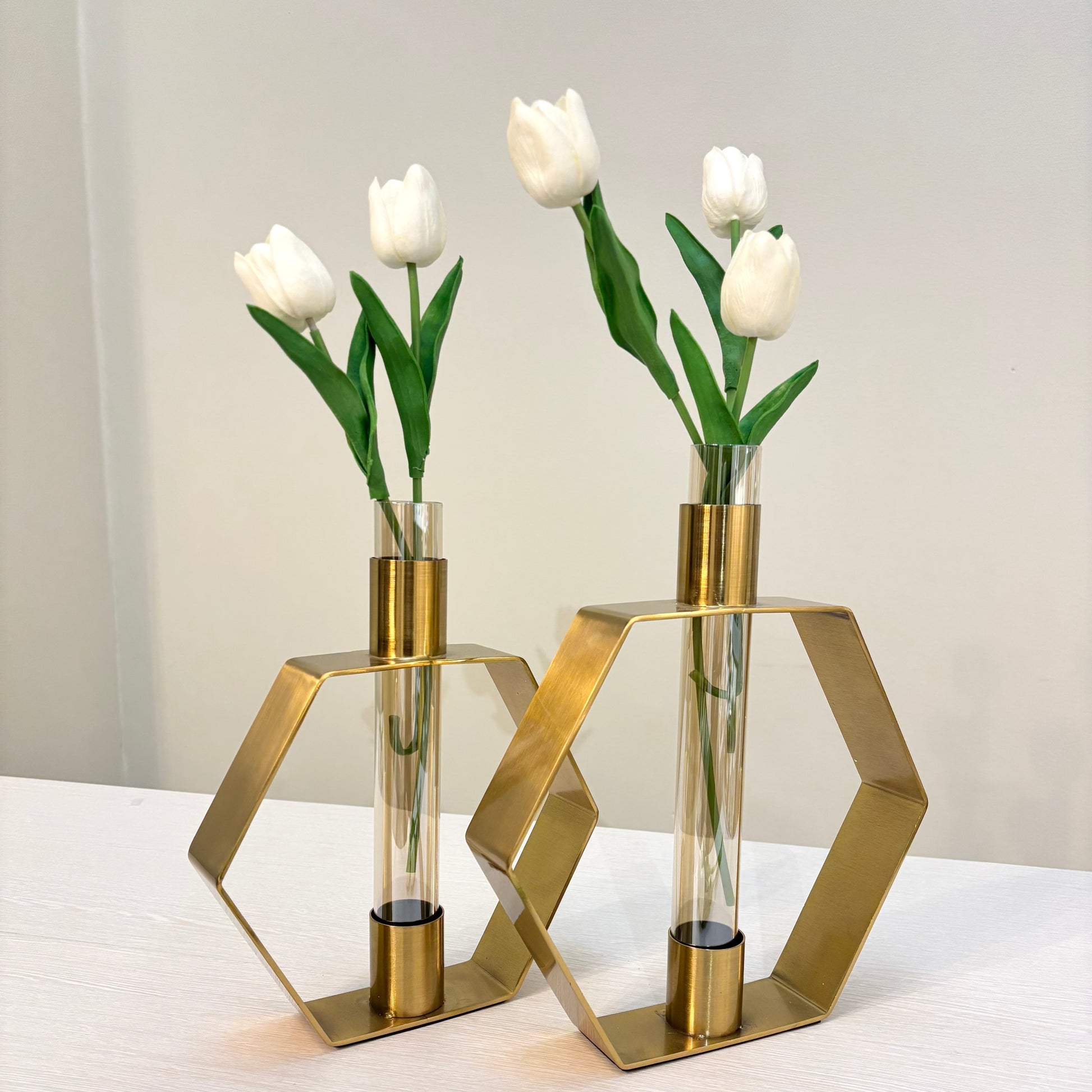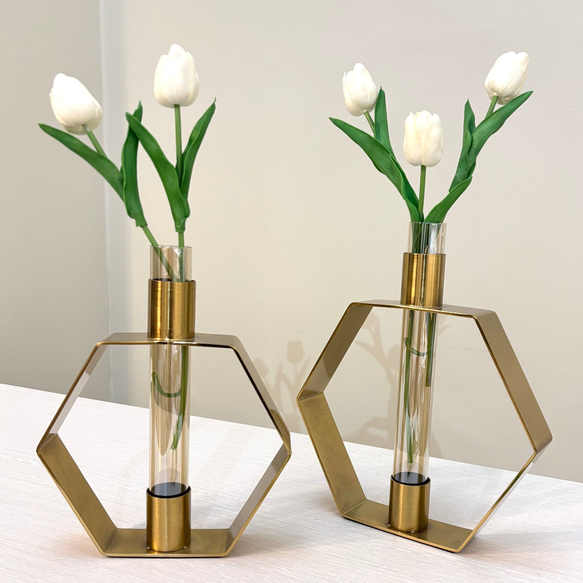 En vas i modern och enkel stil. Tillverkad av högkvalitativt metall och glas. Designa denna vas med någon vacker gren för att skapa ett attraktivt utseende.